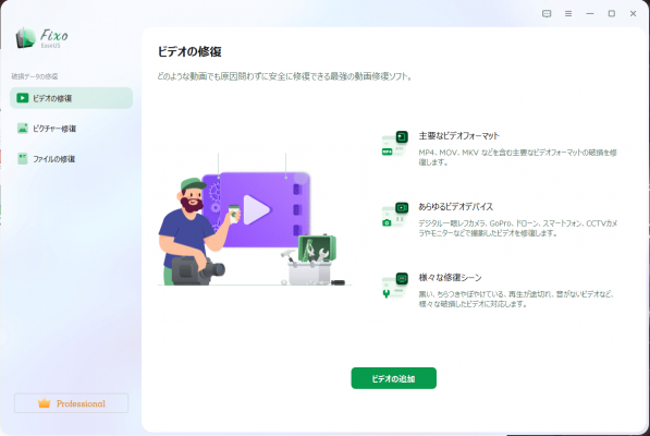 ステップ1.「ビデオの修復」で「ビデオの追加」を選択し、修復するビデオを追加します。