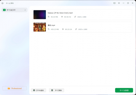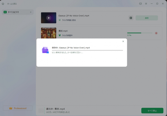 ステップ2.追加されたら、「すべてを修復」を選択して修復処理を開始します。ビデオのサイズや損傷の程度によって、しばらく時間がかかります。