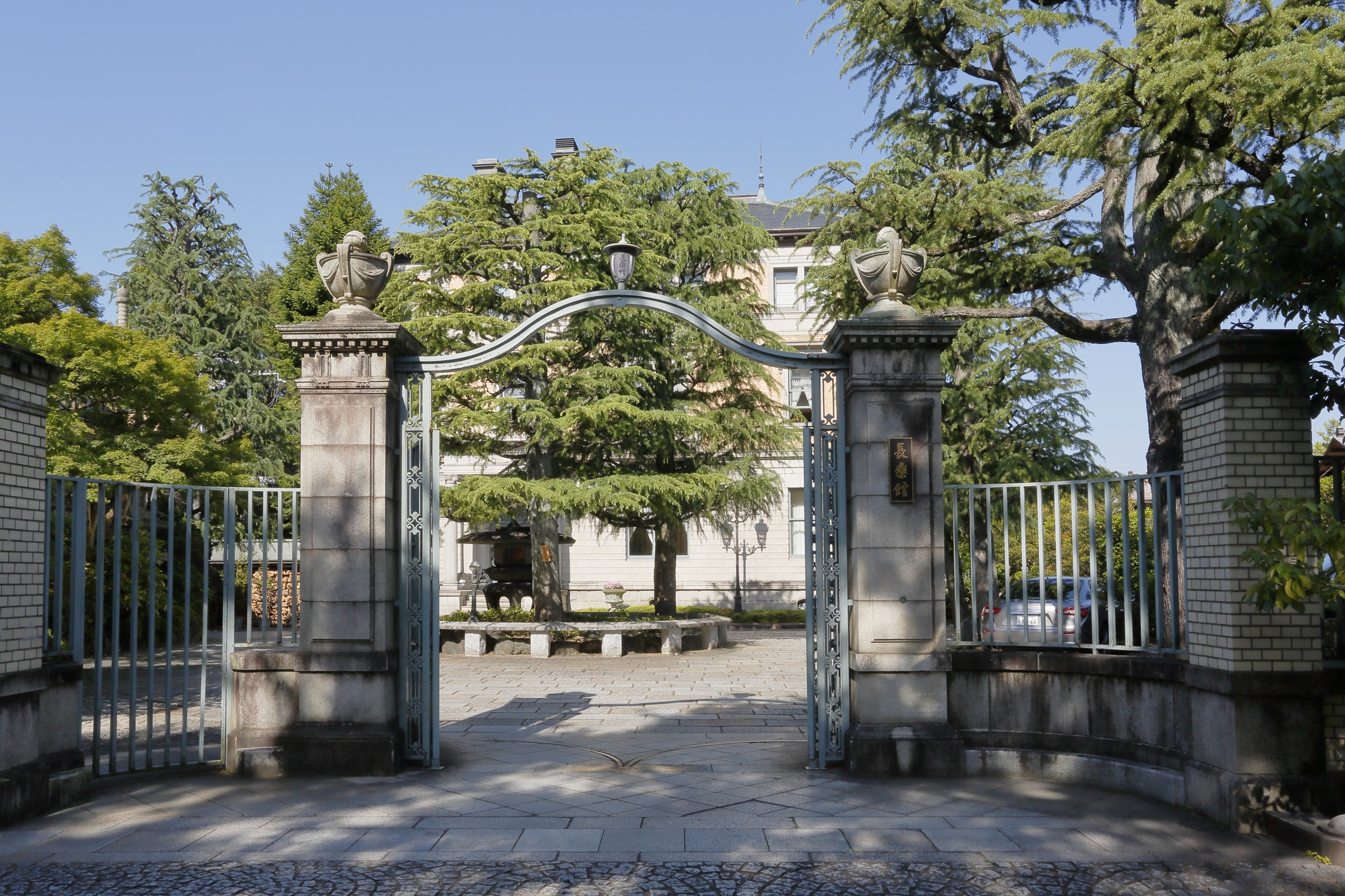 旧村井家別邸(長楽館)は、明治の煙草王と呼ばれた実業家の村井吉兵衛の京都別邸として建築された洋館です。1905(明治38)年に着工、1907(明治40)年6月9日に上棟、1909(明治42)年に竣工しました。設計・監督はアメリカ人建築家J.M.ガーディナー、施工は清水満之助、内装は東京の杉田商店、京都の河瀬商店が手掛けました。長楽館という名前は、初代内閣総理大臣 伊藤博文によるもので、同氏が揮毫した「長楽館」の文字を使用した扁額が館内に掲げられています。国内外の賓客の迎賓・接遇施設として活用され、大正のご大典の際にはロシア・イタリアの特派大使を迎えました。