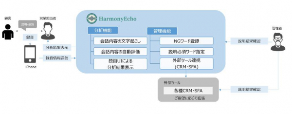 『Harmony Echo』は、音声データの生成AIによる独自分析管理技術により、多様な業務の効率化に貢献します。