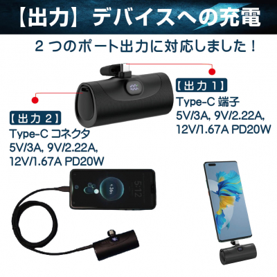 出力(Type-C端子):5V/3A、9V/2.22A、12V/1.67A PD20W