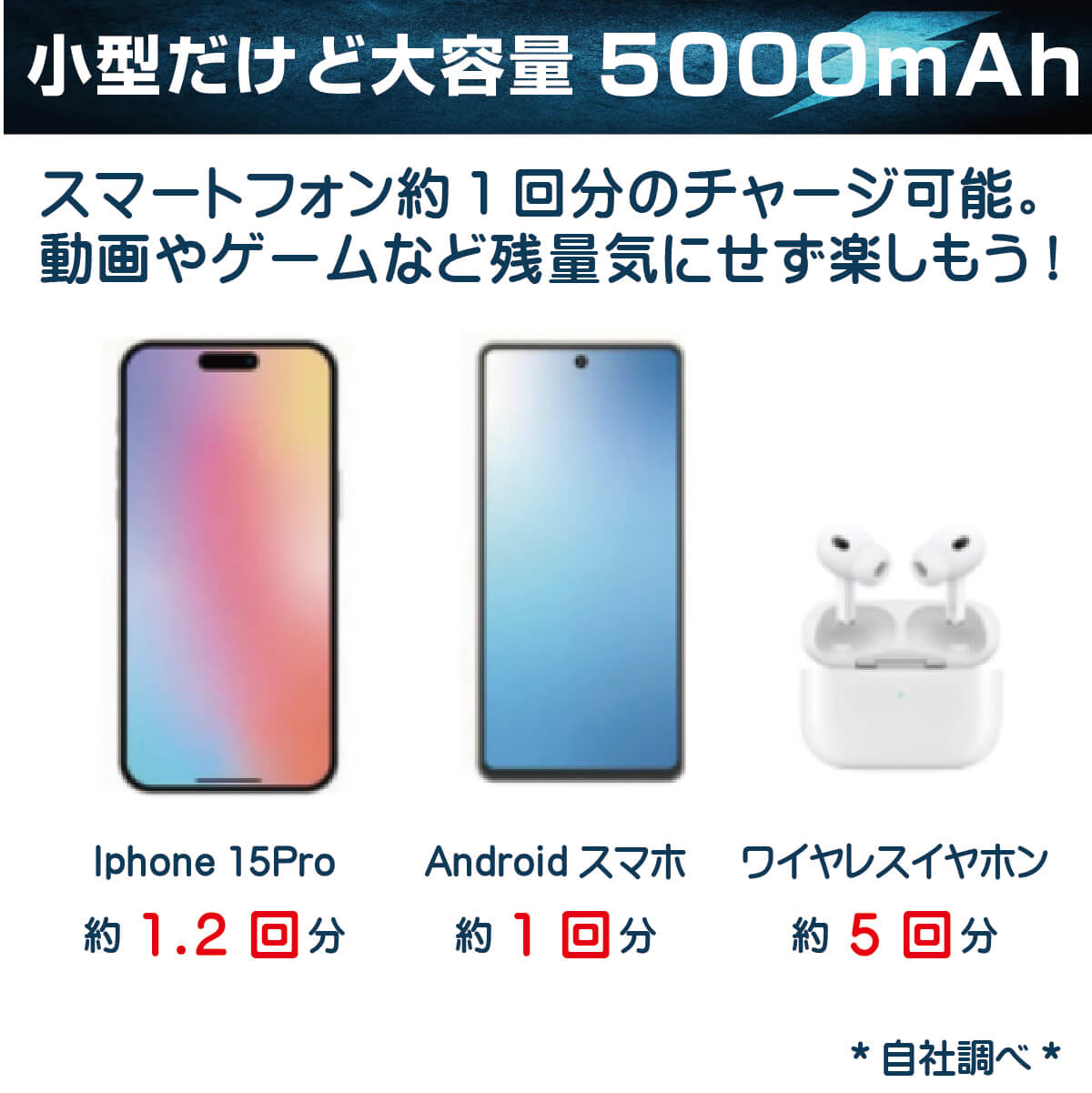 iPhone 15 Pro約1.2回分、Android約1回分の充電可能。※充電目安