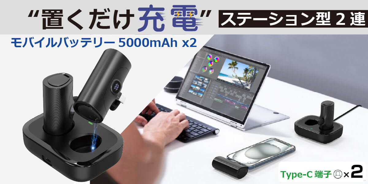 ミスターカード株式会社(所在地:埼玉県川口市)は、置くだけでバッテリーを充電できるドックとPD対応モバイルバッテリー5000mAh2個がセットになった『ステーション型2連モバイルバッテリー』(カラー:ブラック)を全国のドン・キホーテ各店(一部店舗を除く)にて2024年10月25日(金)より発売開始いたします。