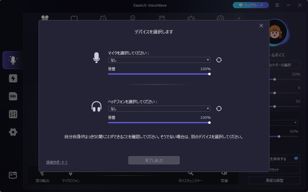 Step 2.お使いのマイクとヘッドフォンを選択し、テストしながら音量を調整して設定を完了します。