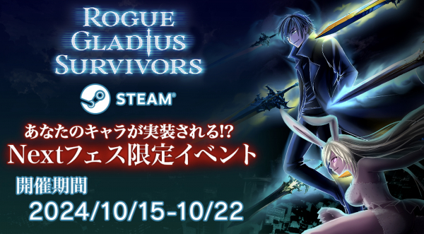 ・SteamNext フェス開催期間中に【Rogue Gladius Survivors】にタイムアタックステージが実装された Steam Next フェス限定体験版が登場します。 タイムアタックで好成績を残したトップの方は指定の応募方法にて、本ゲームの特別キャラクターとしてご本人から いただいたイメージをもとに製品版にオリジナルキャラクターとして実装させていただきます。