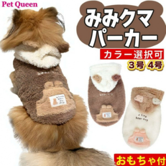 <ペットクイーン 犬服 くま耳 フリース パーカー みみクマパーカー+犬用 おもちゃ セット>