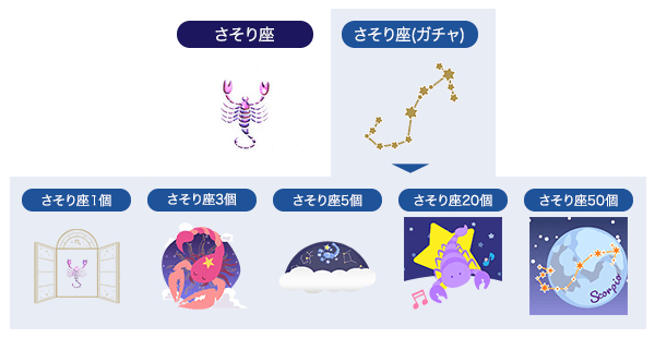「さそり座」ギフトは、21カードのガチャとミッション達成で引き当てることができます。