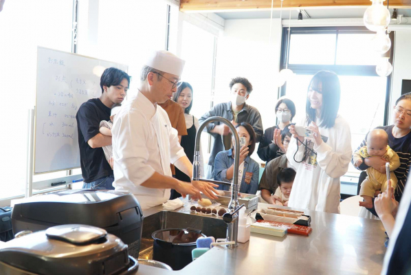 炊飯器でも簡単にできるよう、小豆の煮る時のポイントや煮汁を簡単に冷ます方法などデモンストレーションしていただきながら、赤飯の炊き方を教えていただきました。