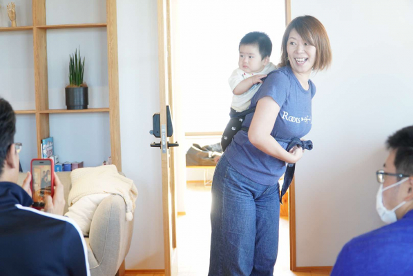 後半は、一般社団法人ボディセンス・インスティテュート 代表理事 高橋由紀が、赤ちゃんの抱き方やおんぶの仕方について紹介し、体験していきました。