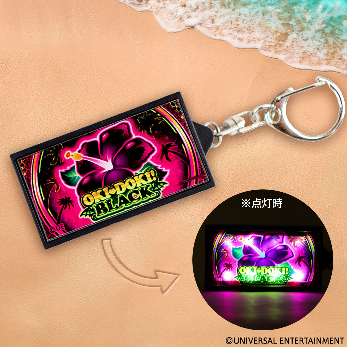 背面のスイッチを入れるとLEDが点灯し、「沖ドキ!BLACK」のパネルが光ります。