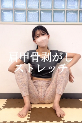 今回投稿された動画は「肩甲骨はがしストレッチ」(https://www.tiktok.com/@mominotakumi_official/video/7414103566937312519?lang=ja-JP)」です。