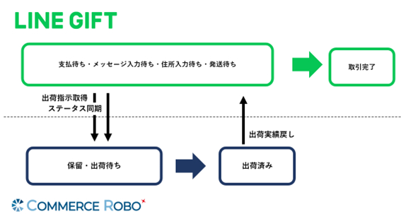LINEギフトで注文ステータスが「メッセージ送信待ち」「住所入力待ち」「発送待ち」になった場合、コマースロボの注文を入金済みに自動反映します。
