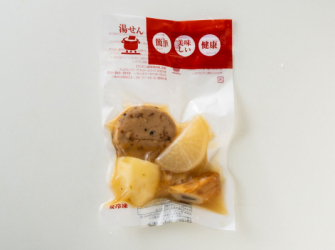 肌寒くなってくるとおでんが恋しくなってきますよね。わんまいるでは、冬の人気メニュー「おでん」を今年も作りました。関西では基本となる昆布とかつおの出汁に、牛すじ出汁を加えてコクを出しています。具材を1種類づつ別炊きし、具と出汁を個包装に詰めて真空し冷凍しているので、さらに出汁の旨味が具材に染み込んでいます。具材は、黒豆がんもに、大根、ちくわ、ごぼう天、じゃが芋の5種類。晩御飯のおかずに、酒の肴にもおすすめです。湯せんで温めるだけだから、これからの季節、冷凍庫に常備しておきたい一品です。