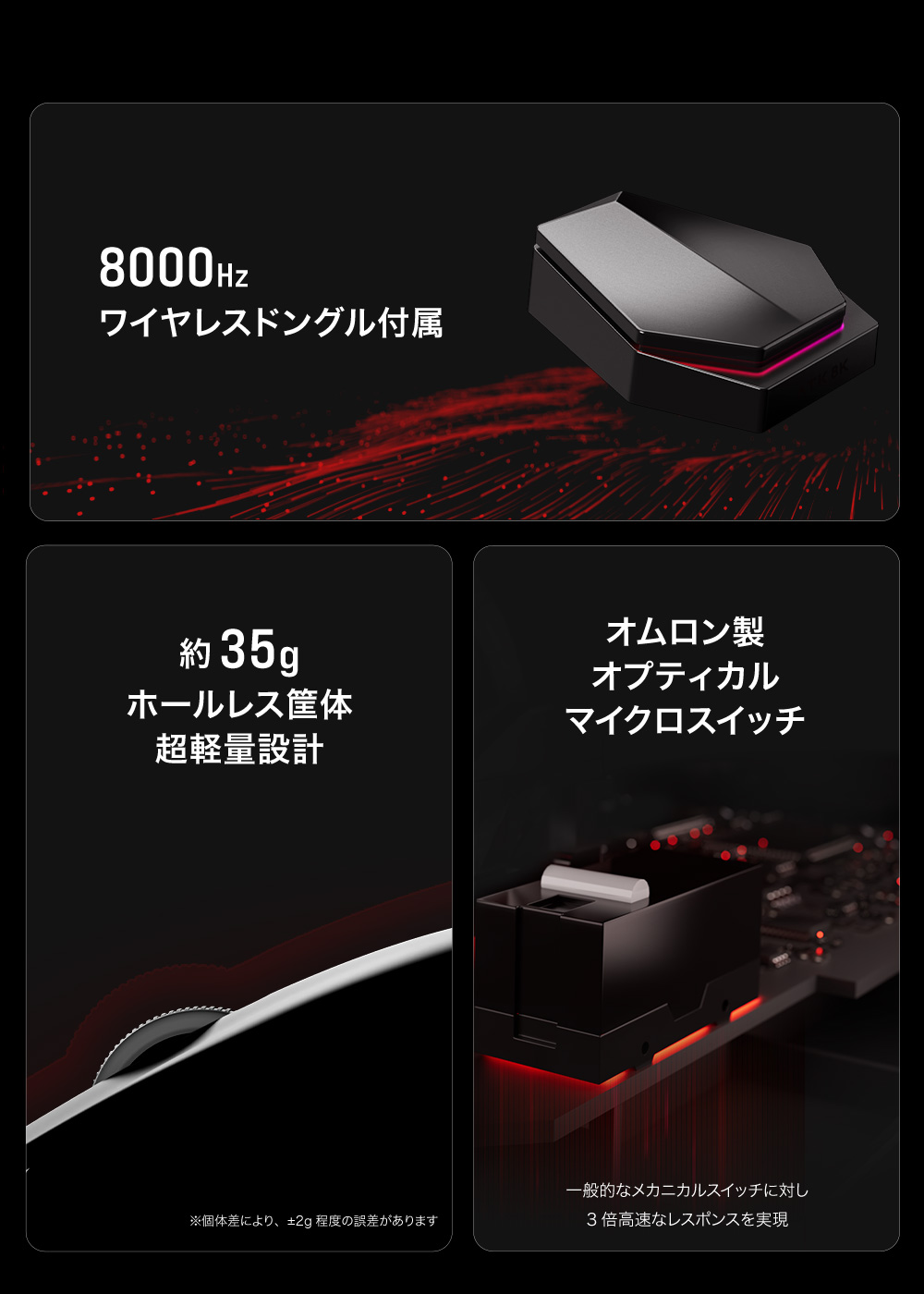※高いデータ転送レートのため、PC環境によっては8000 Hz設定時に想定されたパフォーマンスが得られない場合があります。