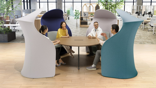 「Work Harbor」シリーズは、ゆとりある美しいフォルムのスクリーン、ソファ、テーブル等を柔軟に組み合わせて、仲間との一体感を高めるチームスペースや、周囲とのつながりを感じながら集中できるソロスペースなど、多様なレイアウトをつくることが可能です。工業デザイナー・伊丹由和氏を起用し、デザインと機能性の高さを実現しました。