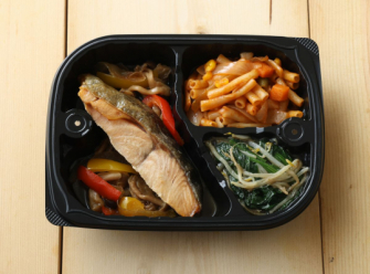 好評をいただいている食品添加物無添加・国産食材100%のワンプレート「わんまいる 美食弁当」。週替わりで和洋中とバラエティあるメニューをお届けしています。昨年も期間限定後も再開のご要望が多かった北海道産鮭のメニューを今年も秋冬限定で復活します。秋らしく、玉ねぎとキノコも使ってソテーに仕上げました。副菜には、主菜との栄養バランスを考え、マカロニナポリタン風と、もやしとほうれん草のソテーをセットにしています。副菜もそれぞれ60gとボリュームあって野菜をしっかり摂っていただけます。