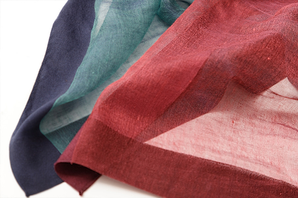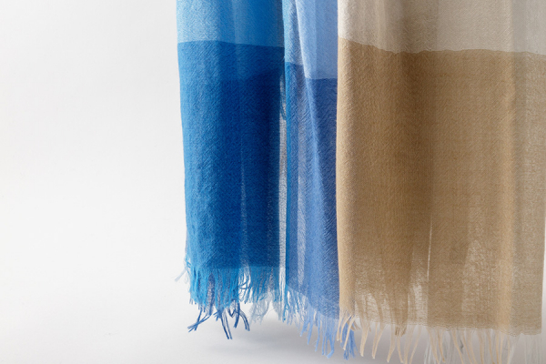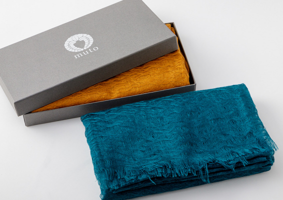 江戸時代より極薄の絹生地を織り続けてきた山梨県西桂産地。武藤のストールは、 絹やカシミヤ、オーガニックコットンやリネンなど 自然素材の極細糸を最も心地よい肌触りに混紡し織り上げます。