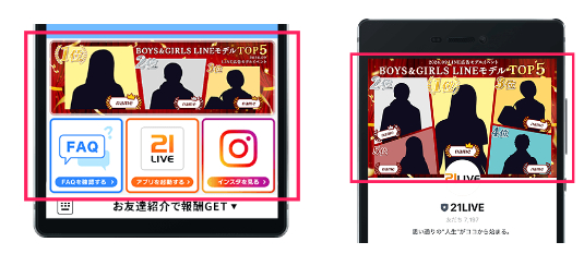 総合ランキング入賞でLINEモデル出演権を獲得!21LIVE公式LINEメニュー&プロフにて、トップライバーとして掲載します♪