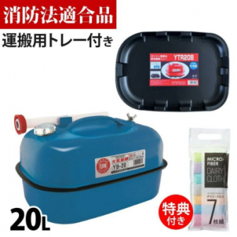 <ガソリン携帯缶 矢澤産業 20L缶 ブルー 横型 YB-20 運搬用トレー 給油キャップ付き セット>