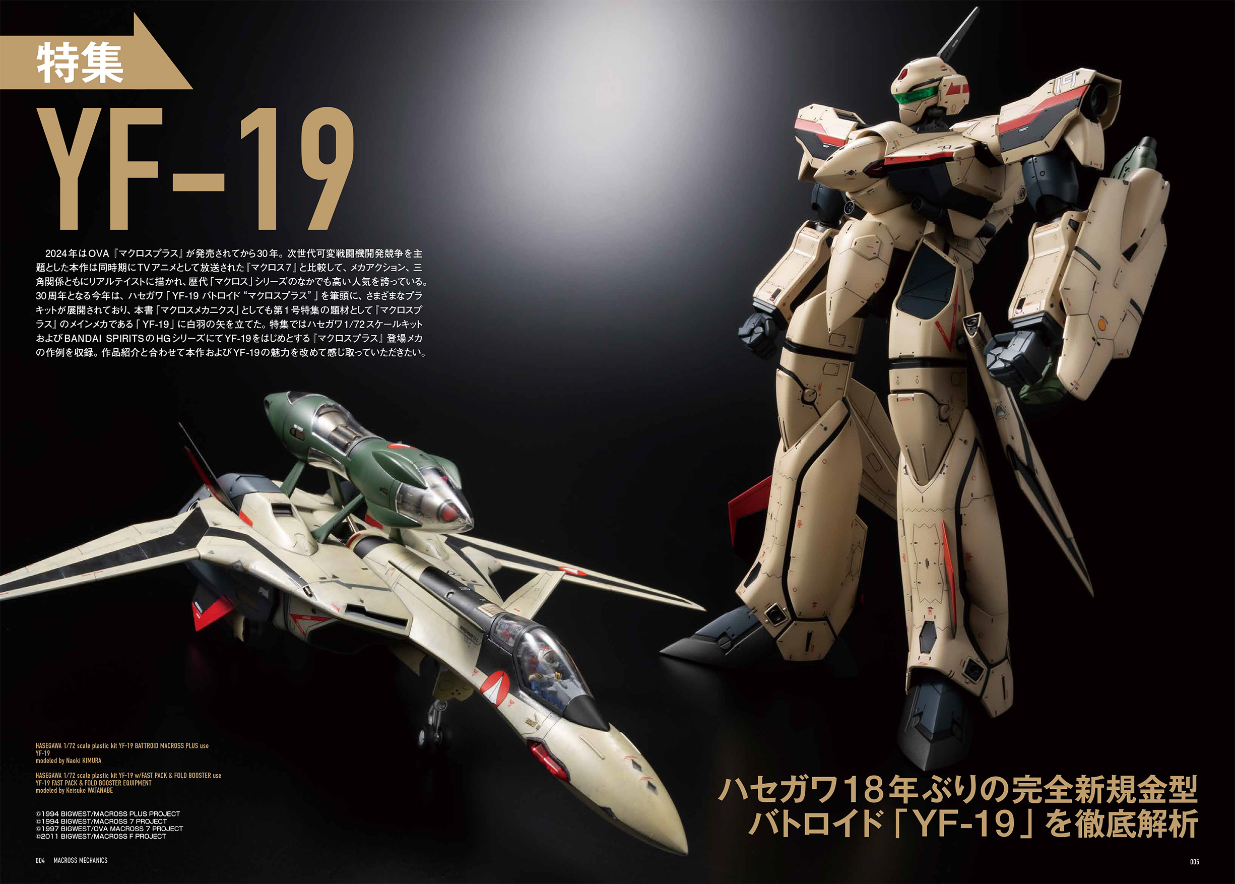 第1弾の特集は「YF-19」。2024年は『マクロスプラス』30周年であり、ハセガワ製「YF-19 バトロイド“マクロスプラス”」が注目を集めています。本アイテムを主軸に、設定画によるメカ紹介やBANDAI SPIRITSのHG『マクロスプラス』シリーズを紹介します。