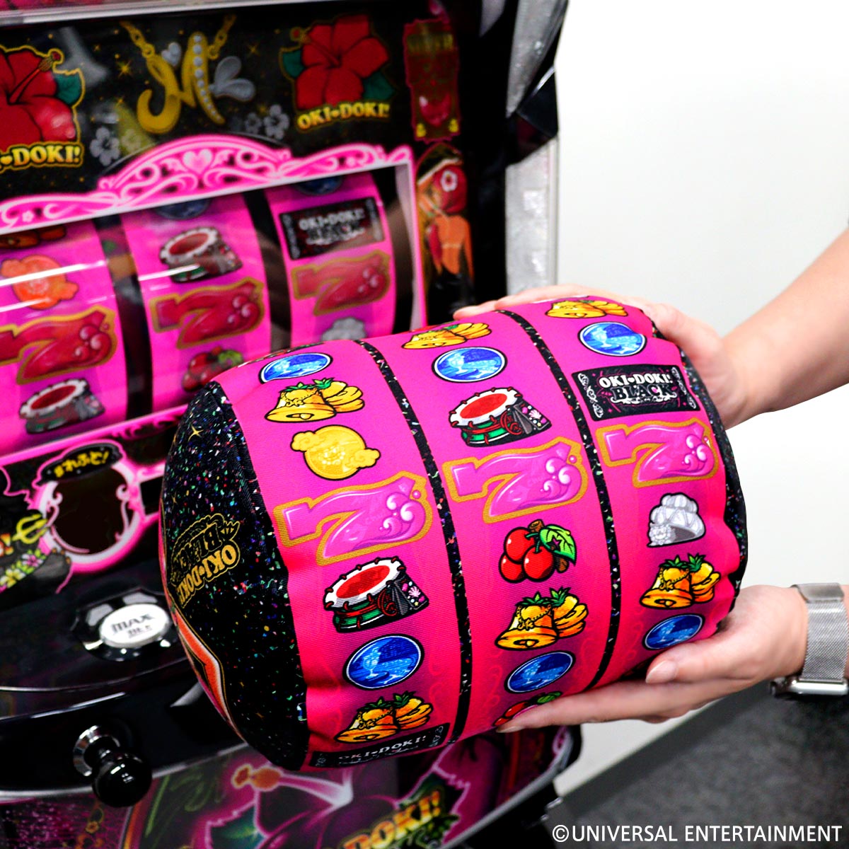 「沖ドキ!BLACK」のリール配列を忠実に再現したクッションが登場!