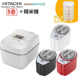 <日立炊飯器 ホワイト RZ-V100FM 山本電気精米機 カラー選択式 MB-RC52 ライスストッカ 3点セット>