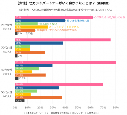 ・ セカンドパートナーは現在、既婚者以外の独身カップルにも広がっている様子ですが、今回の調査は本来の意味に則して対象を既婚者に限定しました。