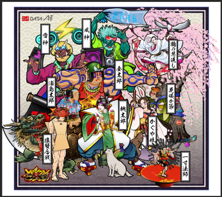 桃太郎、浦島太郎、金太郎、かぐや姫、一寸法師、花咲か爺、そして風神・雷神が一堂に会する壮大なサイファーが展開されます。