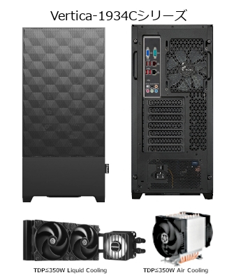 Vertica-1934Cシリーズは、LGA-4677ソケット(ソケットE)Intel Xeon W-3500/3400(112レーン)CPU及びIntel Xeon W-2500/2400(64レーン)CPUが搭載可能な高性能ワークステーションで、Windows系OSをはじめ、幅広いLinux系OSでの動作が確認されています。