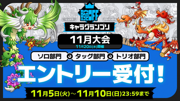 腕OFFキャラグランプリ ソロ/タッグ/トリオ11月予選