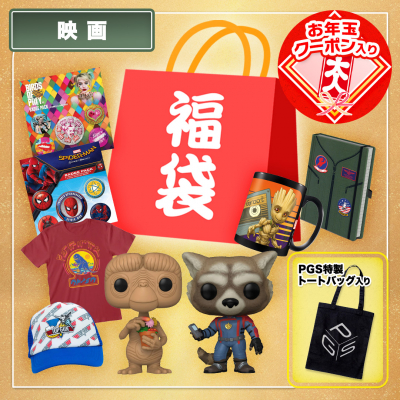 こちらの映画福袋には、販売価格の2~3倍相当の映画関連商品が入っています。さらに、すべての福袋にお年玉クーポン(500円 / 1,000円 / 3,000円のどれか1つ)と、PGS特製ロゴ入りオリジナルトートバッグが封入されています。
