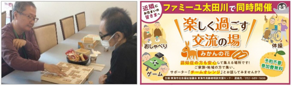 つどいの場「みかんの花」は、一人の認知症の方の活動支援から始まりました。昨年度より、家族葬のファミーユさんが会場提供という形でご協力してくださり、今では地域のみなさんに利用していただける場となりました。