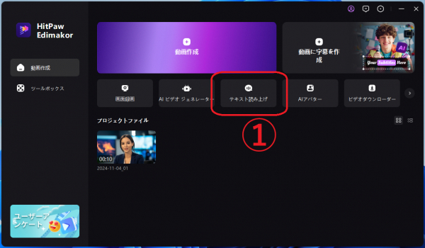 1.HitPaw Edimakorを起動して「テキスト読み上げ」をクリック。