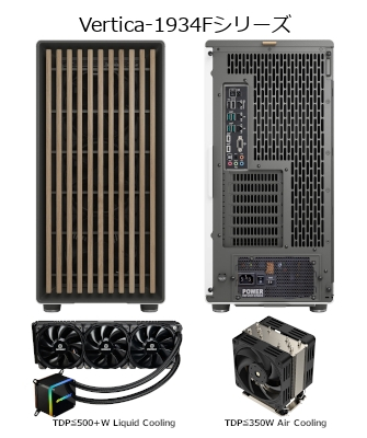Vertica-1934Fシリーズは、LGA-4677ソケット(ソケットE)Intel Xeon W-3500/3400(112レーン)CPUを搭載したワークステーションで、CPUとメモリーのオーバークロッキングをサポートしています。
