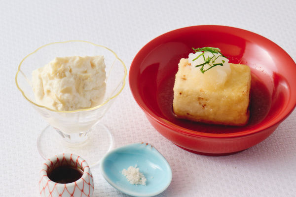・お塩で食べる豆腐、大豆の甘みが感じられておいしい。