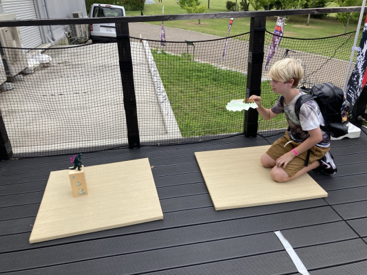(2)「投扇興(とうせんきょう)ゲーム」/日本伝統の遊び。扇を的に向けて飛ばすゲーム