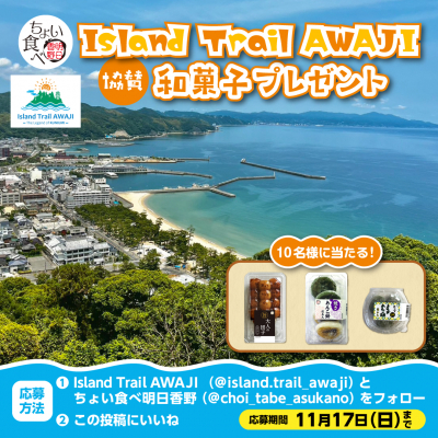 この度、同レースの開催を記念して、2024年11月5日(火)より、ちょい食べ明日香野と「Island Trail AWAJI」公式Instagramにて「Island Trail AWAJI協賛和菓子プレゼント」キャンペーンを開始しました。