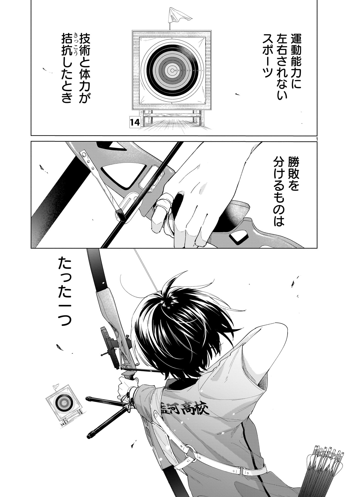 運動が苦手な四谷翼咲。過去のトラウマからスポーツとは無縁の生活を送っていたが、高校では運動部に入り、活躍して、“憧れられるくらい自信のある人になりたい”と夢見ていた。そんな中、部活紹介で見たアーチェリーに興味を持つ。射つだけのシンプルな動作。これなら自分にもできそう!と心弾ませるが、想像通りにいかず落ち込む翼咲。だが、同じクラスの宝楽六華の放った一言が、翼咲の運命を変えることに--。