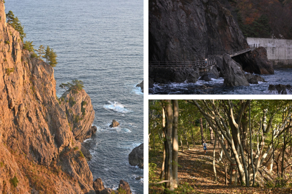 ハイライトのひとつが北山崎。海のアルプスと呼ぶにふさわしく、海岸線に沿って高さ200mの断崖が連なります。ここでは思わず足を止め、自然が作り上げた造形美に見入ってしまいました。