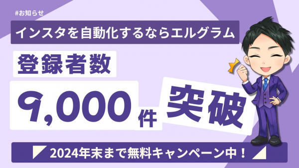 株式会社ミショナ(代表:鈴木隆宏)が開発・提供するInstagram(インスタ)自動化システム「エルグラム」は、無料キャンペーンの実施などにより、2024年10月15日(火)にアカウント登録数9,000件を突破しました。