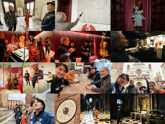 クレモナ訪問当日は、松下氏の解説でユネスコの無形文化遺産にもなっているヴァイオリン博物館やクレモナ大聖堂を視察した後、松下氏のヴァイオリン工房を訪問し、長時間に渡りヴァイオリンの制作現場を見学させていただきました。将来の宇宙用ヴァイオリンの制作に向けて大いに参考になりました。