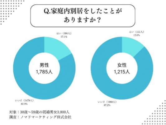 イベントプラットフォームを提供するノマドマーケティング株式会社(東京都渋谷区)は、全国の30歳~59歳までの既婚男女3,000人を対象に「家庭内別居に関するアンケート調査」を実施しました。
