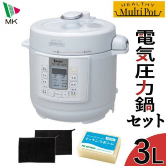 <エムケー精工 電気圧力鍋 ヘルシーマルチポット ホワイト EA-130W ふきん キッチンスポンジ付き 3点セット>
