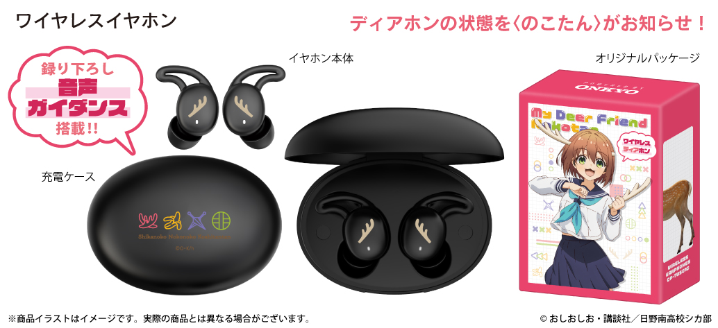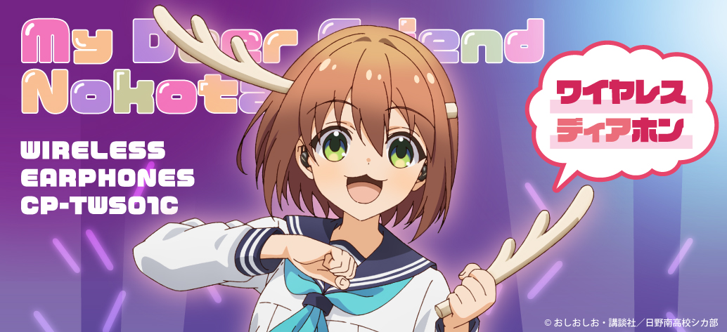 オンキヨー株式会社(所在地:大阪府大阪市、代表取締役社長:大朏 宗徳)は、完全ワイヤレスイヤホン「CP-TWS01C」と、 「TVアニメ『しかのこのこのここしたんたん』」とのボイス入りコラボレーションモデル「ワイヤレスディアホン」を受注販売いたします。