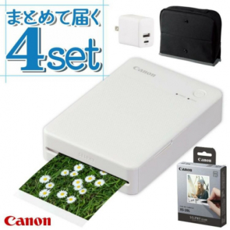 <キヤノン ミニフォトプリンター SELPHY QX20 ホワイト&用紙20枚セット&アダプターセット>