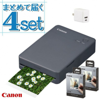 <キヤノン ミニフォトプリンター SELPHY QX20 グレー&用紙20枚セット&アダプターセット>