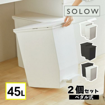 <RISU SOLOW ペダルオープンツイン 45L (ホワイト/ブラック/ホワイト&ブラック) ふた付き 2個セット>