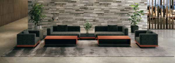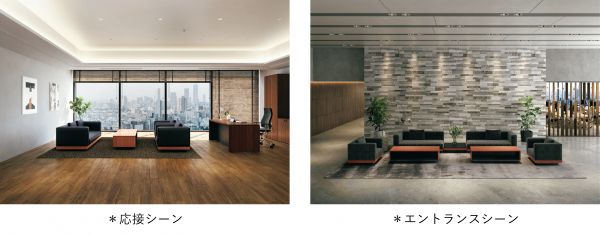 「D8 Dolcevita」のアイテムを組み合わせることで、一般的な対面型からL字型までさまざまなレイアウトを創造できます。役員室向け応接室では対面式の応接家具として、またエントランスやレセプションでは複数のソファを組み合わせたL字型のレイアウトに配置することで、共有スペースとしての空間づくりが可能となります。自由度を高め多彩なシーン提案を可能にする、プラスらしい発想を盛り込みました。