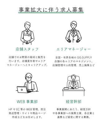 野菜の生産・販売事業を展開する、GG.SUPPLY株式会社 (本社:福岡県中央区、代表取締役:國村 隼太)の運営する、都会の畑『GG.SUPPLY(ジージーサプライ)』は、事業拡大に伴う求人応募受付を開始致しました。