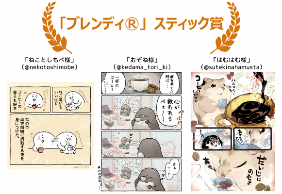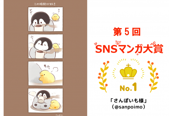 今回は『コーヒーの日』をテーマに味の素AGF(株)と共同開催いたしました。味の素AGF(株)と両社にて厳選な審査を経て、『第5回 #SNSマンガ大賞 #いつでもふぅ』の最優秀作品賞に選ばれたクリエイター様は「さんぽいも」様となりました。おめでとうございます。